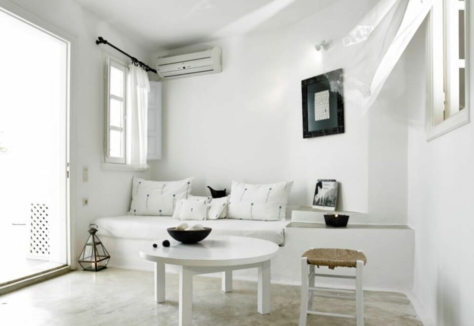 A traditionally decorated two-space apartment, characteristic of the Santorinian architectural style. Consists of a double bedroom and separate sitting area or small lounge. Contains an open plan kitchenette with traditional features such as handcrafted marble basin and wooden surfaces. Restored from a building of 1883. Ideal for one couple or for two persons in separate beds. Could accommodate a couple and young child.